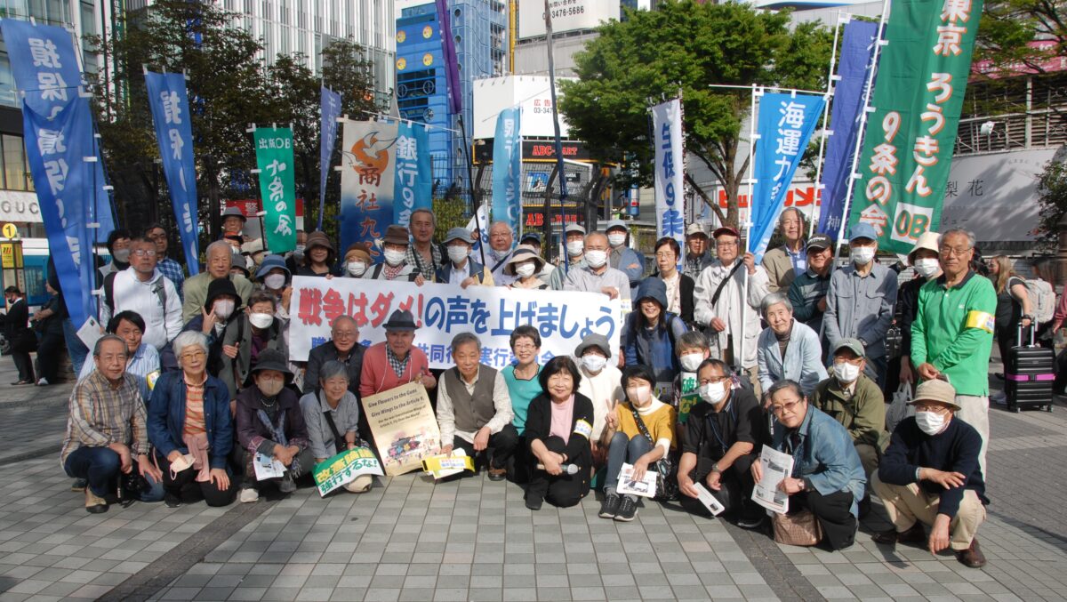 損保9条の会が参加する職場九条の会共同行動実行委員会による第4回宣伝署名行動が、4月13日(土)午後2時より、JR 新宿駅東口で取り組まれました。行動には、損保、生保、海運、商社、銀行、東京労金OB、神奈川ろうきん、出版OB、千代田の各九条の会から合計61名が参加、行動参加者が次々とマイクを握り、駅利用者に対して、「戦争はダメ」「ウクライナもガザも直ちに停戦」の声を日本と世界であげよう、と訴えました。わずか1時間の行動でしたが、チラシ配布が800枚を超え、署名は28筆いただきました。参加者からは、「若い人が多いのでどうかなと思ったが、ビラの受け取りがとてもいい」「今回は英語でスピーチした方がいて、外国人にも私たちの思いを伝えることができた」などの感想が寄せられています。